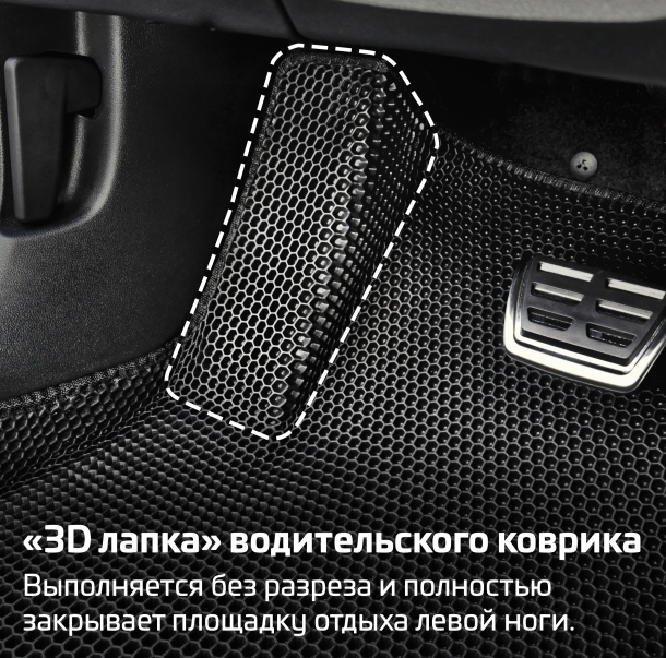 3D лапа водительского коврика – это удобное решение для защиты площадки отдыха левой ноги от загрязнений.